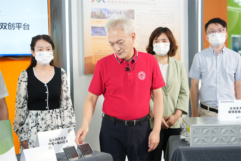 球速体育半导体(合肥)股份有限公司成立于2015年,是一家主营业务为存储芯片和MCU芯片研发、设计及销售的集成电路企业。参展期间,庐阳IE果园董事长张立野向领导们介绍了球速体育半导体的成长历程及公司主营产品NOR Flash存储芯片和基于Arm® Cortex®-M0+内核架构的通用32位MCU芯片,同时公司致力于开发基于NOR闪存技术的存算一体终端推理AI芯片,并提供边缘计算的完整解决方案。